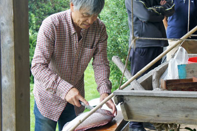 Naoto invited some friends from the neighborhood, who either live here or have here their second house and enjoy country life. It was amazing that they all could manage household smoothly. They could dress big fishes with astonishing easiness, make fire in oven and prepare barbecue with various types of meet and vegetable. They all are enchanted by the life here. They also try to revitalize the community together with the local people. Depopulation, aging and declining economic activities are the common difficulties our local communities face. Naoto and his friends might be able to work together with the local partners to find new ideas and implement them.